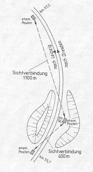 | Lageplan von Posten mit Sichtverbindung untereinander an der Leipzig-Dresdner Eisenbahn. Aus: Borchert 1989 |
