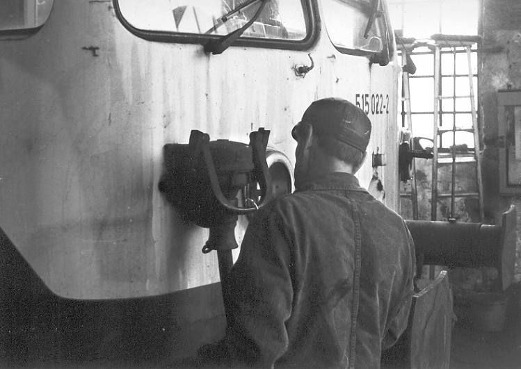 Ein einziges Mal, im April 1987, packte ich Blitzlicht und Schwarz-Weiß-Film ein, um Arbeit und Atmosphäre im Bw festzuhalten.